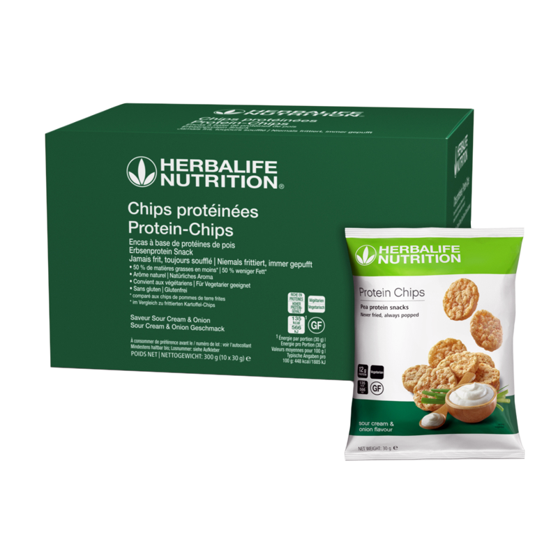 Quant aux Chips protéinées saveur Sour Cream & Onion, chaque paquet contient 12 g de protéines et convient aux végétariens.